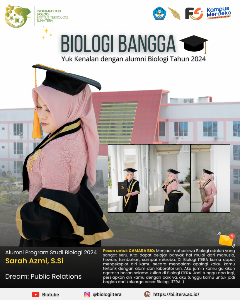 ๐ Follow @biologiitera buat inspirasi dan cerita lainnya dari alumni Biologi ITERA.